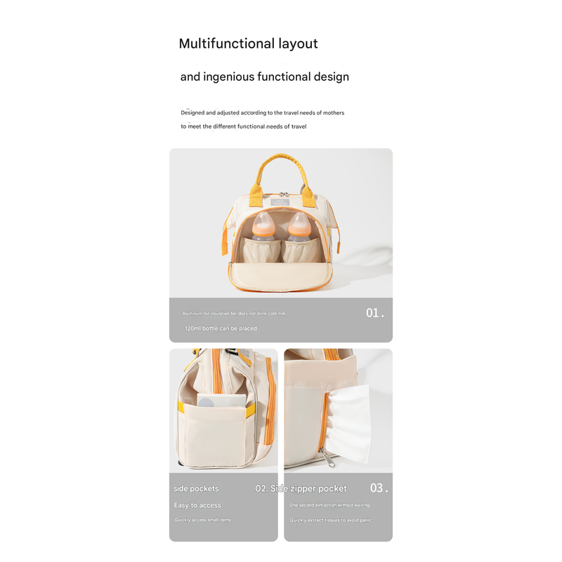 - Insulated Bottle Pockets: The front compartment is lined with aluminum foil to keep two baby bottles warm for longer, ensuring a ready-to-drink meal anytime.